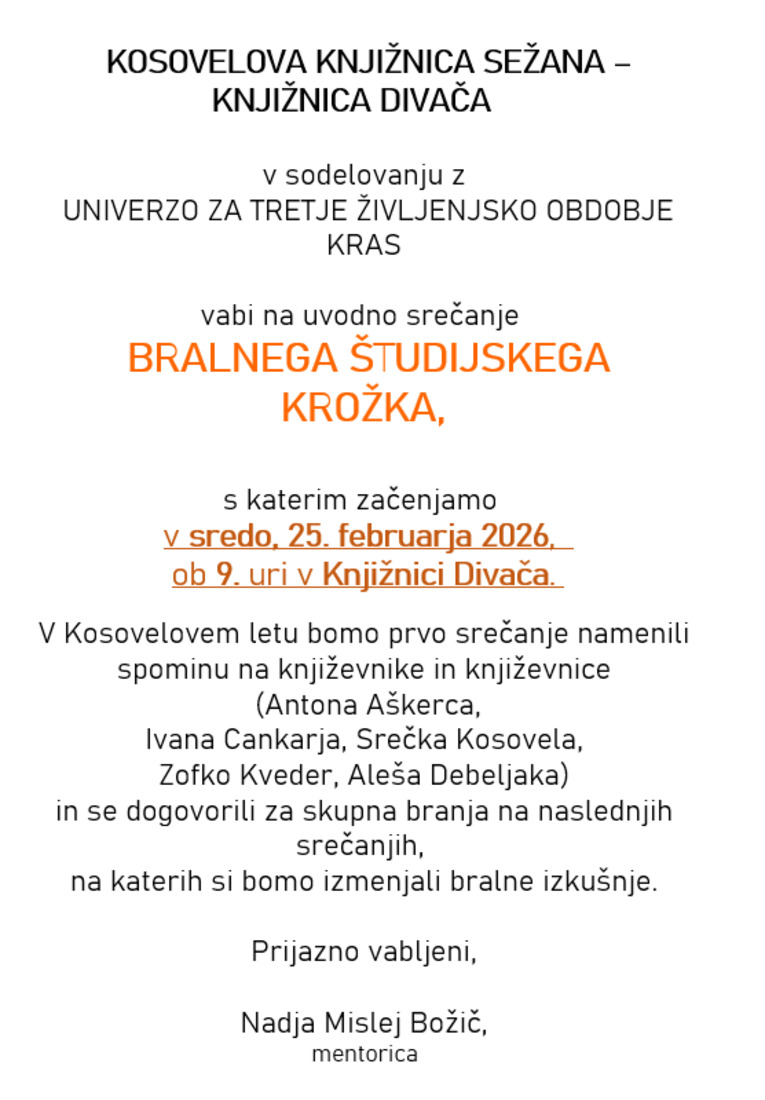 Uvodno srečanje Bralnega študijskega krožka v Knjižnici Divača