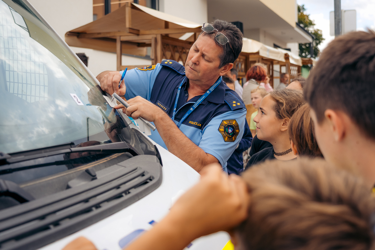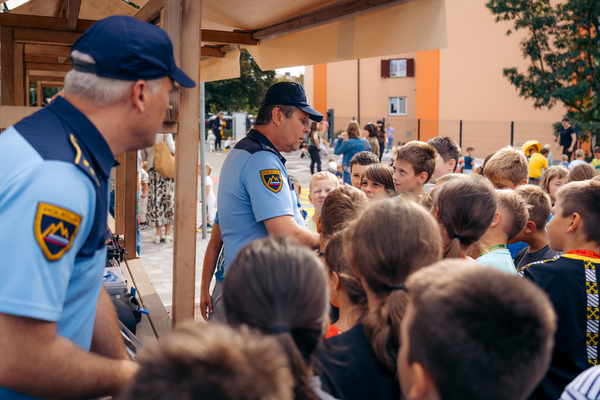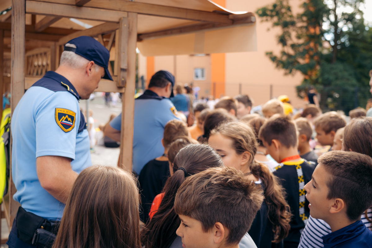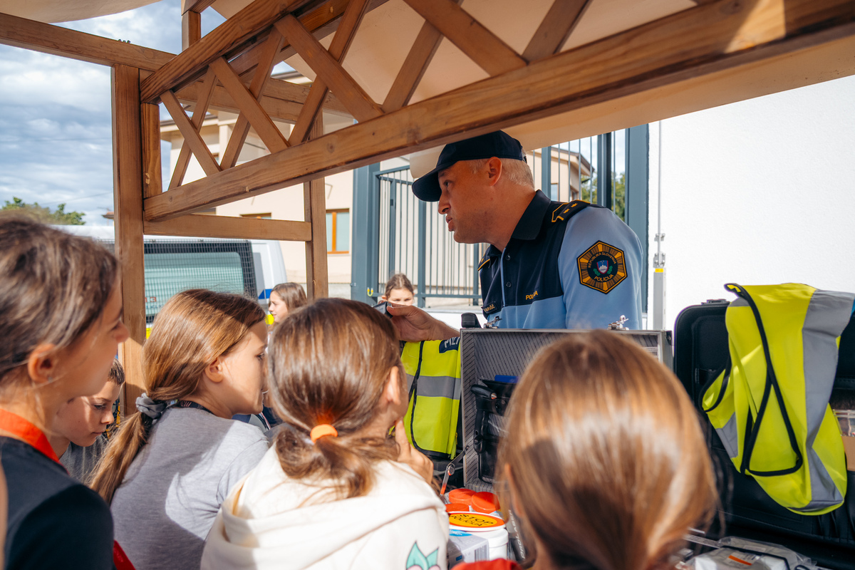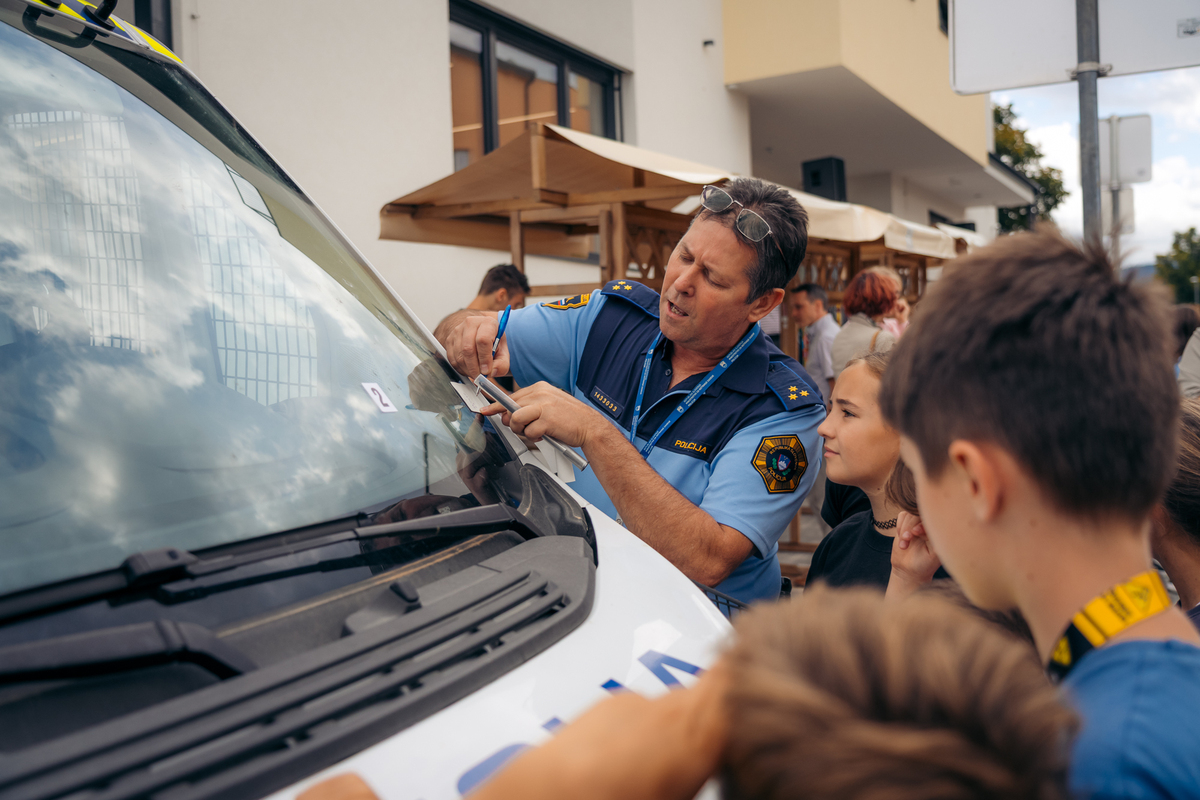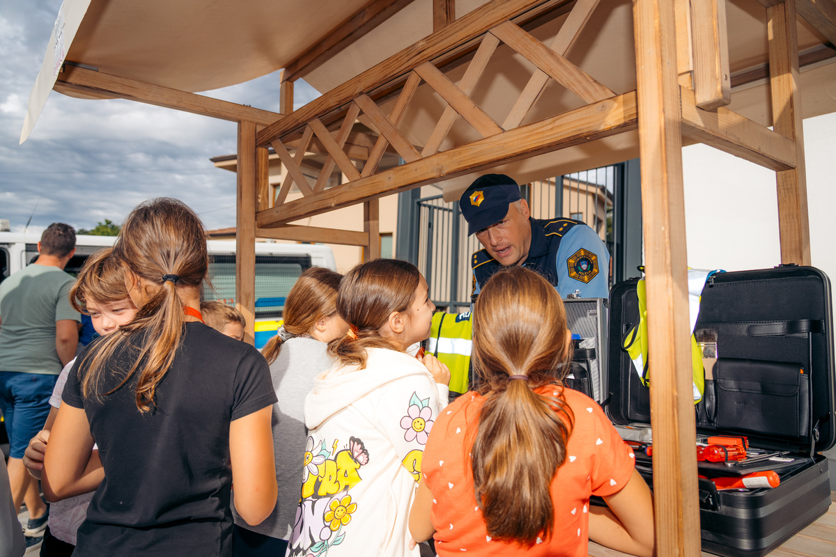 Na ulici so bili z nami tudi predstavniki Policijske postaje Sežana, ki so z učenci delili znanje o svojem delu in prometni varnosti. Otroci so si lahko ogledali opremo, vozilo in orodje – najmlajši so bili še posebej navdušeni.