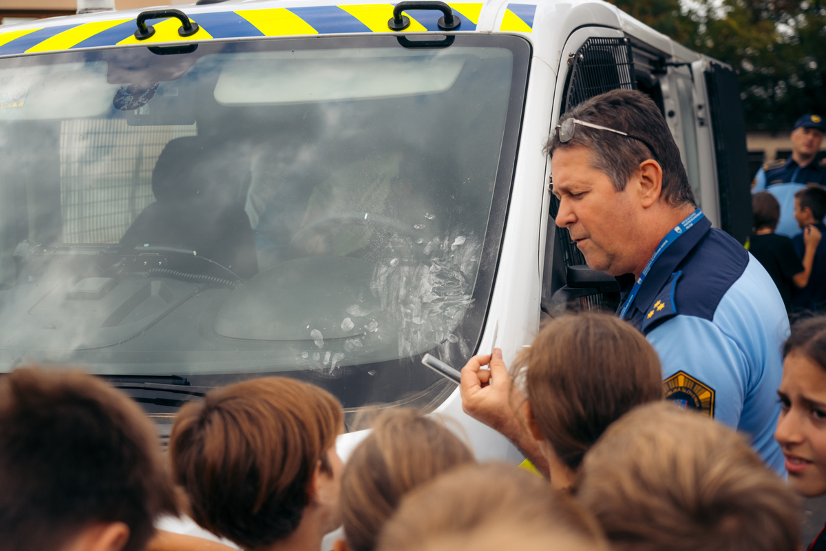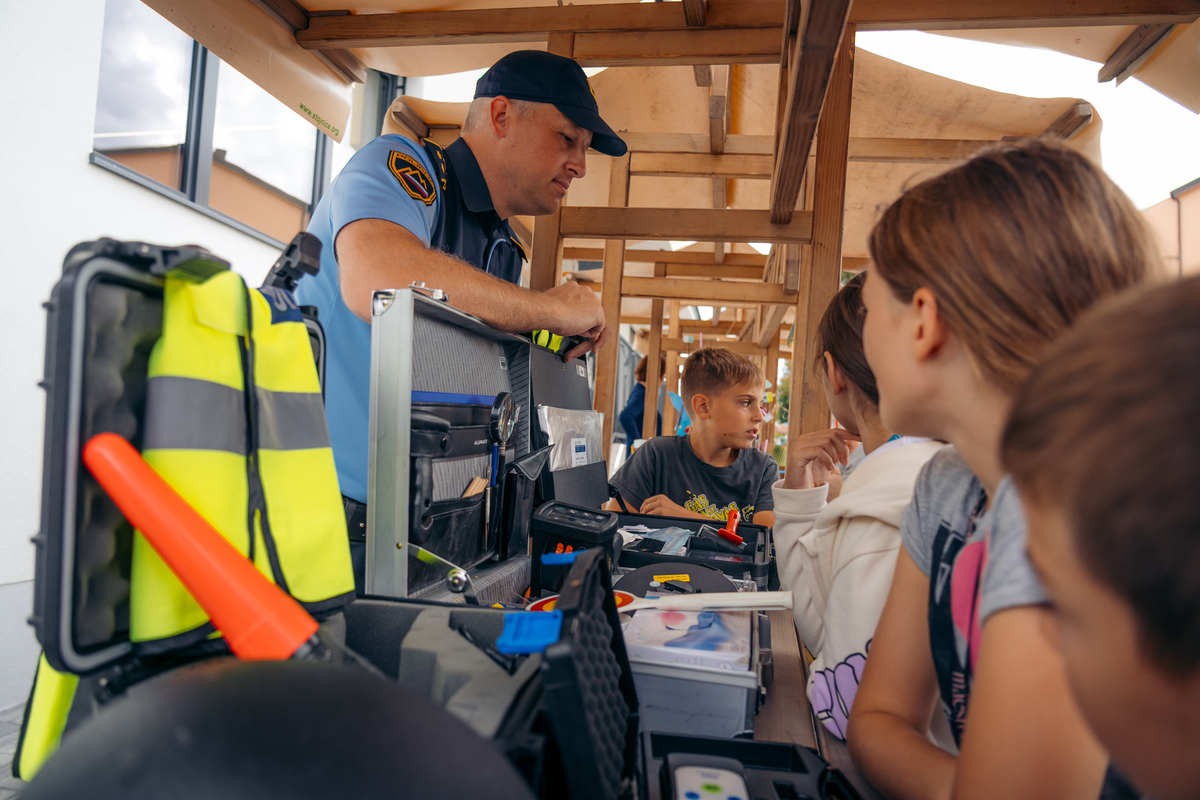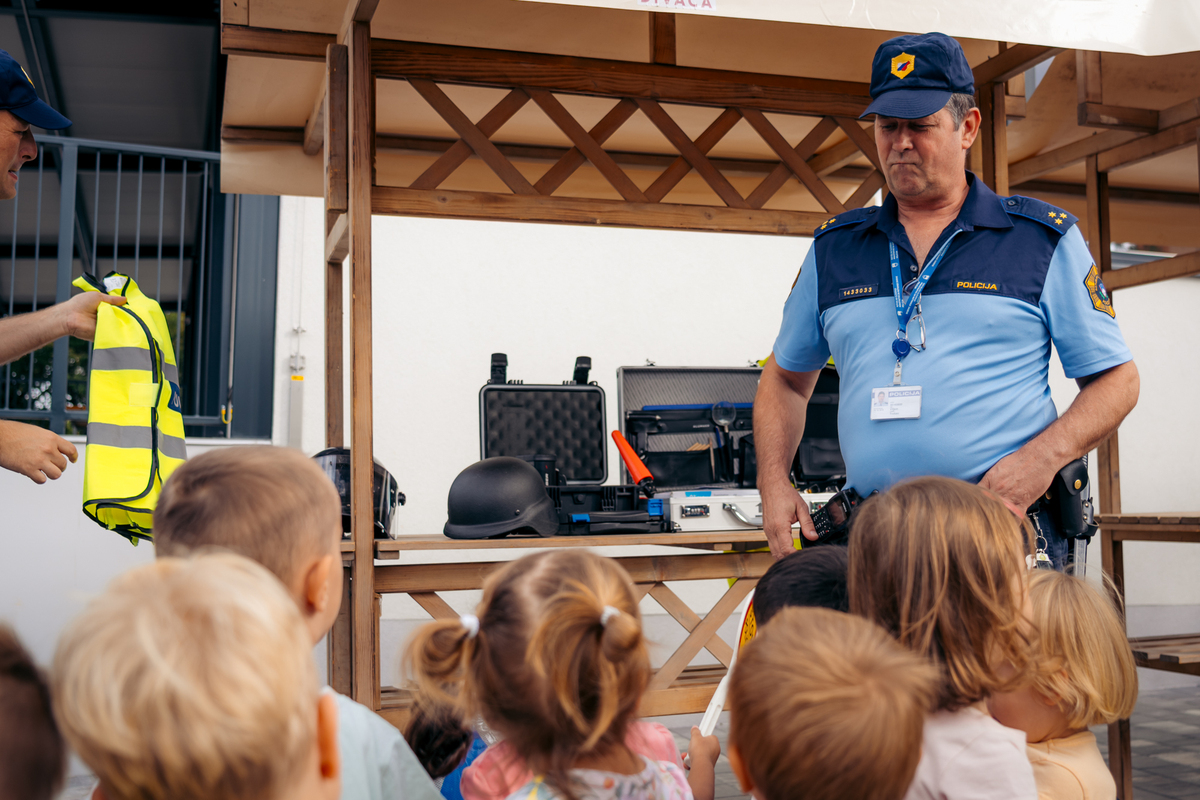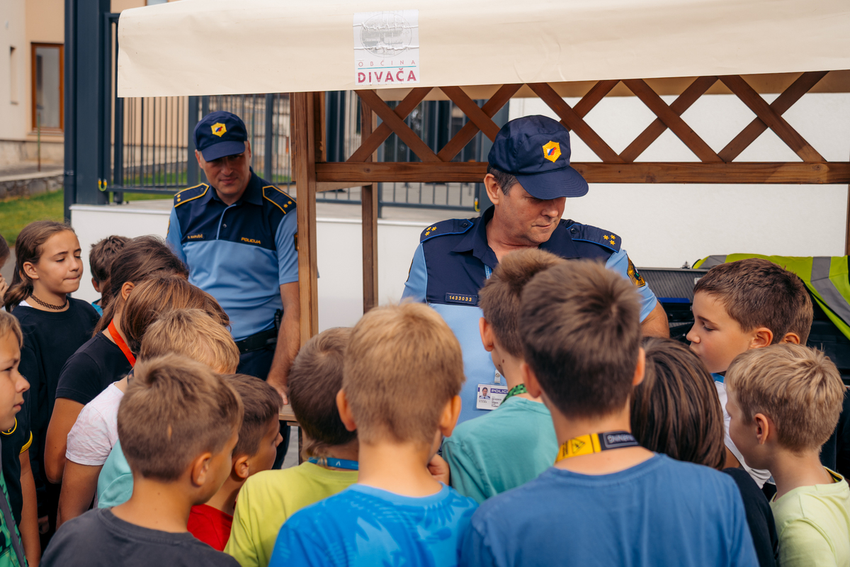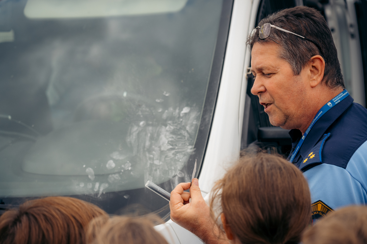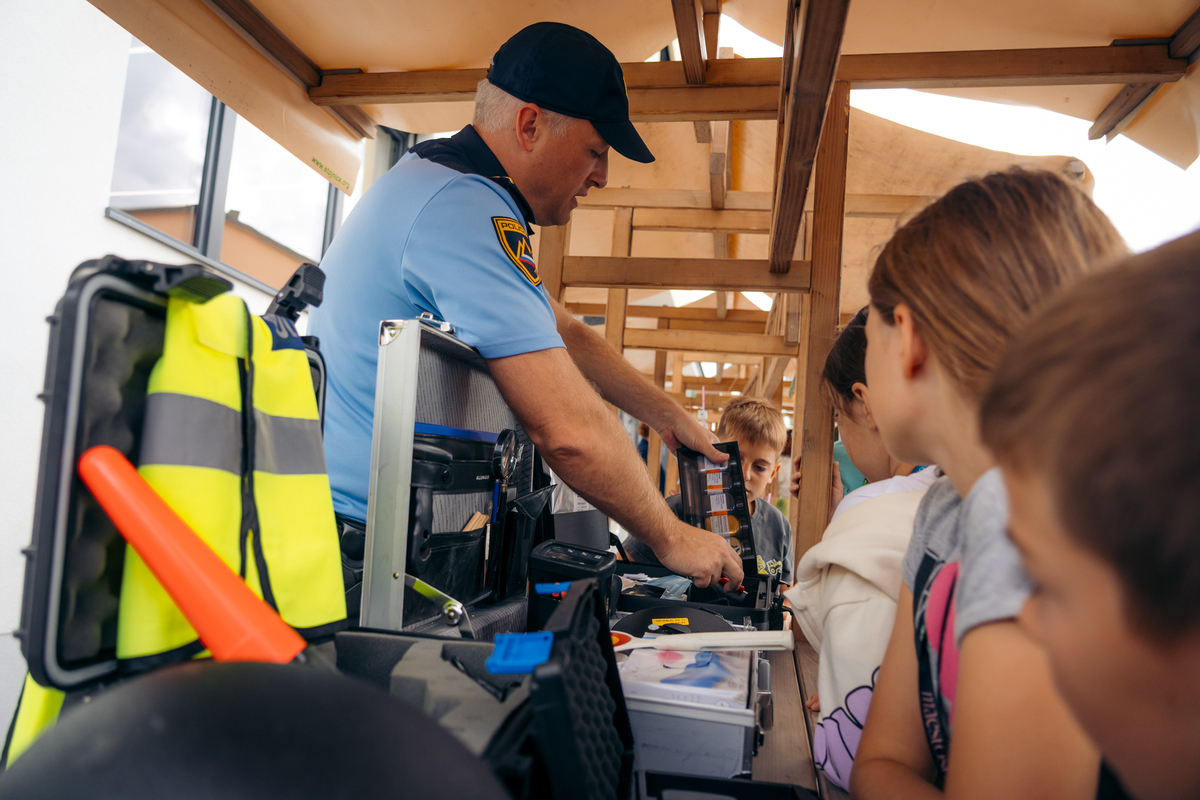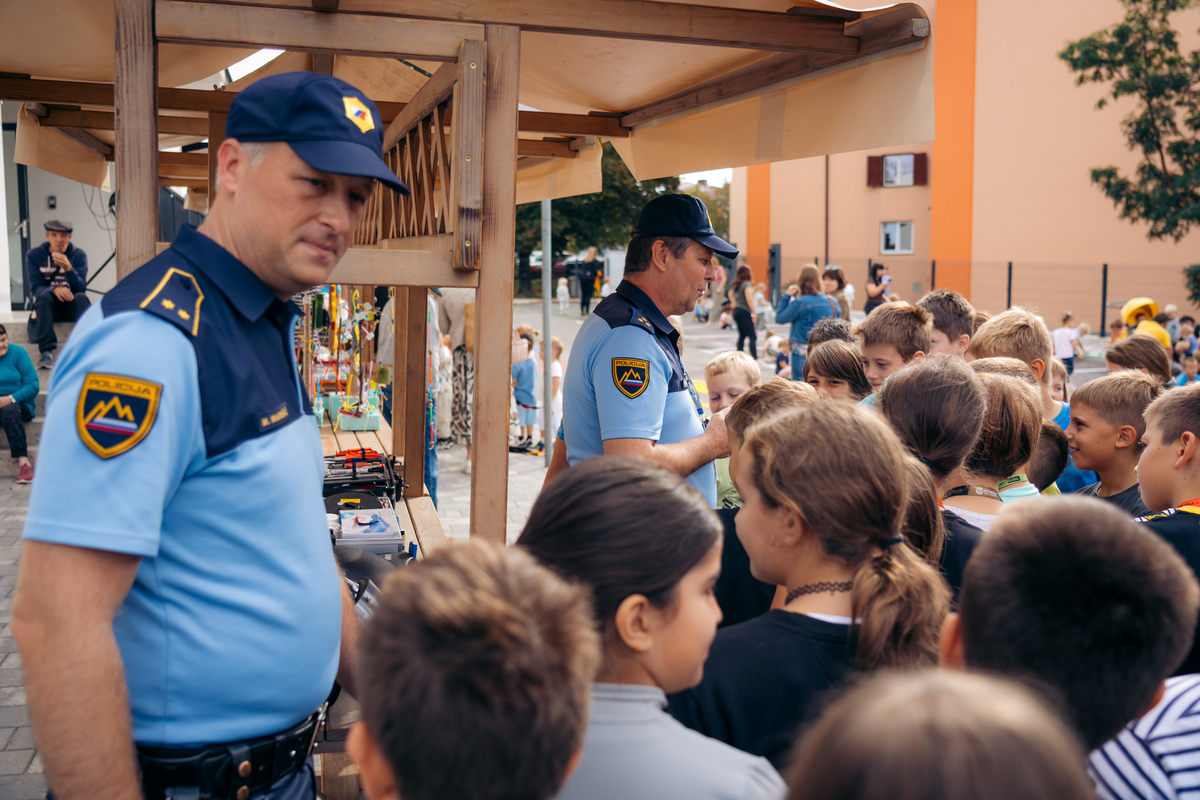Na ulici so bili z nami tudi predstavniki Policijske postaje Sežana, ki so z učenci delili znanje o svojem delu in prometni varnosti. Otroci so si lahko ogledali opremo, vozilo in orodje – najmlajši so bili še posebej navdušeni.