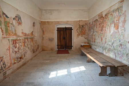 Notranjost ladje cerkve je izjemno bogato poslikana. Na stenah najdemo prizore iz Kristusovega pasijona, poklon svetih Treh kraljev, pa tudi zanimive prikaze vsakdanjega življenja iz tistega časa in slikovito živalsko motiviko.
