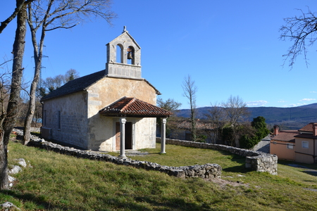Na griču severno nad vasjo Gradišče pri Divači stoji slikovita cerkev sv. Helene, obdana z značilnim cerkvenim obzidjem iz suhega kamna. Cerkev ima korenine v zgodnji gotiki, v 16. stoletju pa so jo povečali in preoblikovali – zgradili so večji prezbiterij in povišali ladjo. Najvidnejša preobrazba je potekala sredi 17. stoletja, ko sta bila zgrajena še vhodna lopa in preprosta zvončnica (letnica 1653 je še danes vidna na portalu).