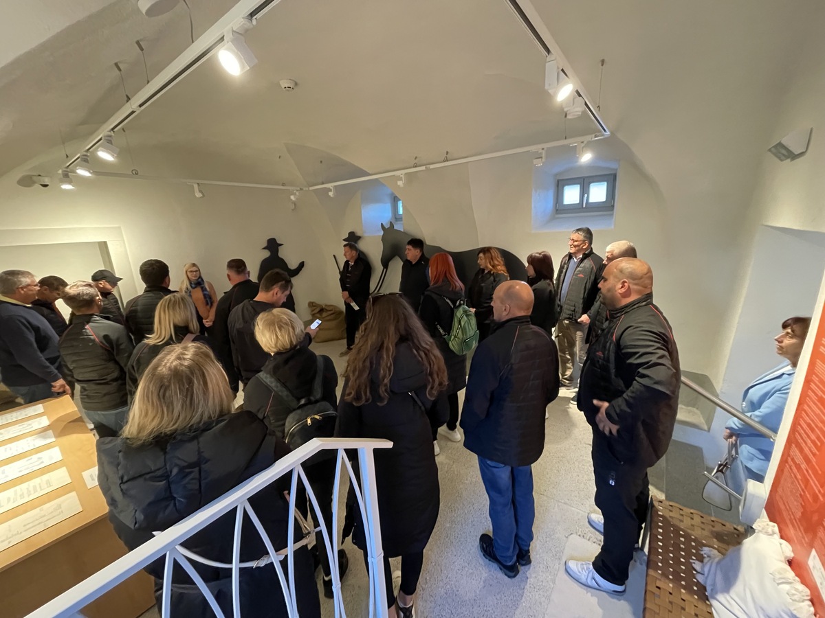 Sledil je ogled Muzeja tovorništva in prevozništva, ki domuje v obnovljeni srednjeveški mitnici – eni redkih ohranjenih v Sloveniji. Obisk se je zaključil v muzejski kavarni Kotlarjeve hiše, kjer je najemnica Katarina Kleva goste pogostila z muzejsko sladico tortico Mitnica, izdelano po posebni recepturi. Ob kavi in sproščenem pogovoru je stekel prijeten klepet med predstavniki obeh občin.