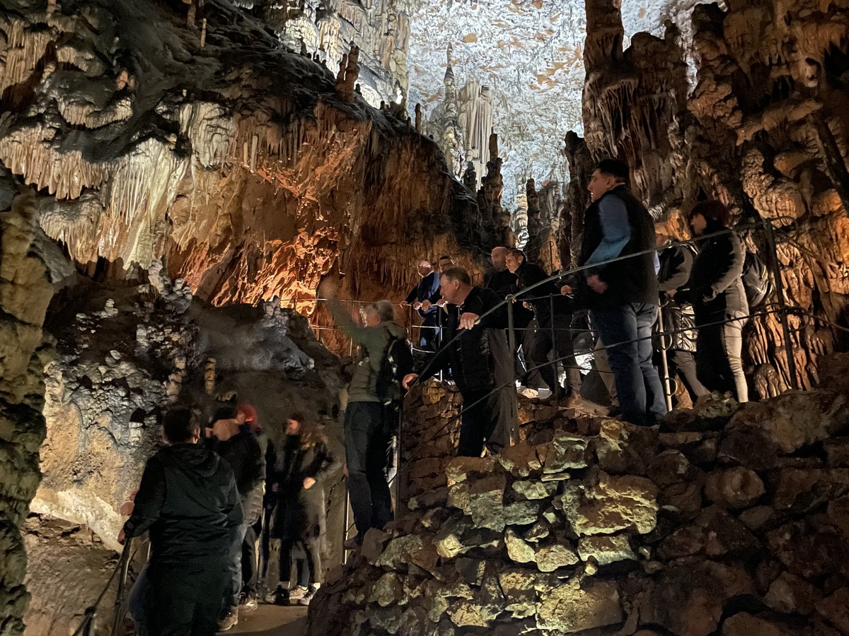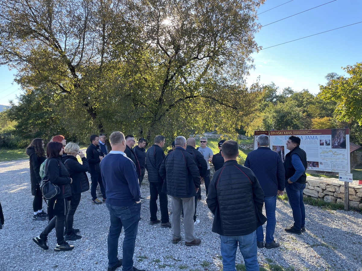 Po kosilu v Hotelu Malovec je program obiskovalce popeljal še v Divaško jamo, kamor jih je pospremil podžupan Mario Benkoč. Pod vodstvom člana Jamarskega društva Gregor Žiberna Divača, Boruta Lozeja, so si ogledali jamo in sodobno urejeni Sprejemni center Divača.