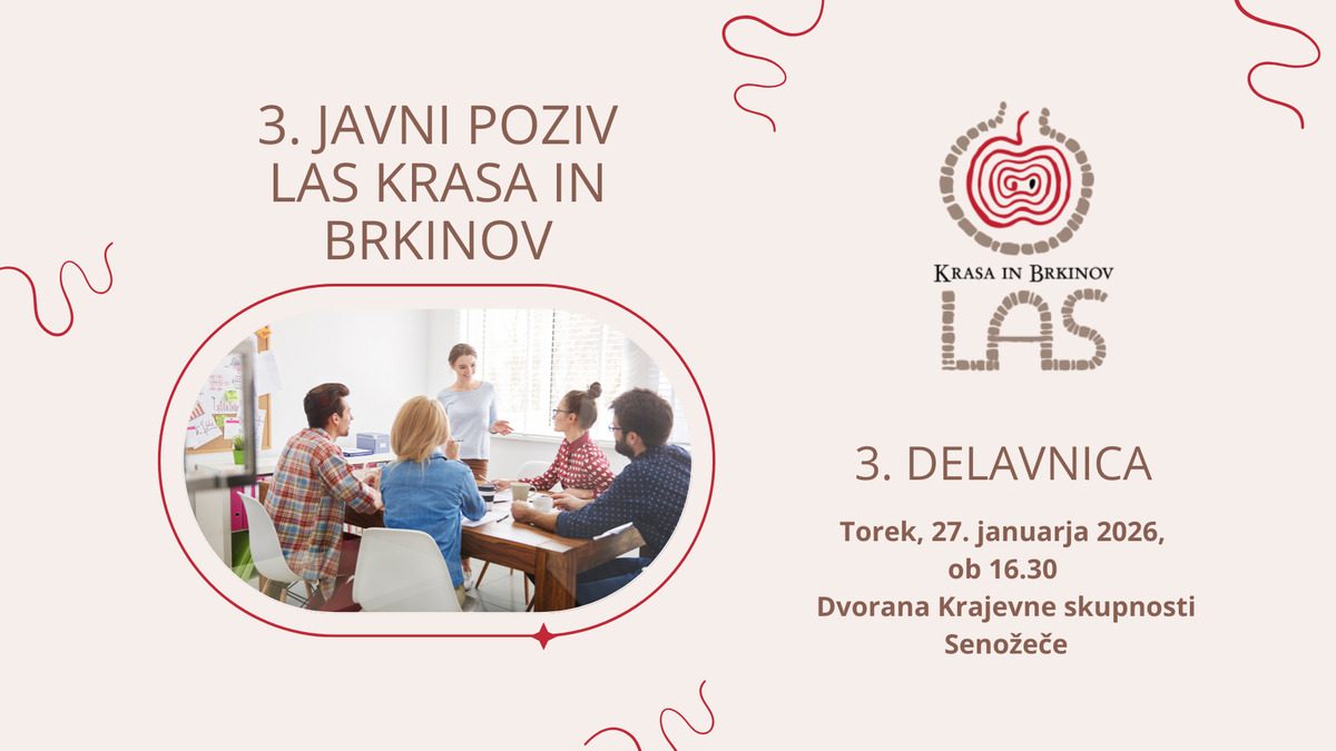 Odprt je 3. Javni poziv LAS Krasa in Brkinov. Ob tej priložnosti vas obveščamo, da bodo izvedene tudi delavnice za povezovanje projektnih idej ter so namenjene potencialnim prijaviteljem na javni poziv LAS Krasa in Brkinov, zlasti podjetjem, podjetnikom posameznikom, društvom, zavodom in drugim lokalnim akterjem, ki želijo razviti trajnostno naravnane projekte z lokalnim učinkom. Delavnice bodo potekale: