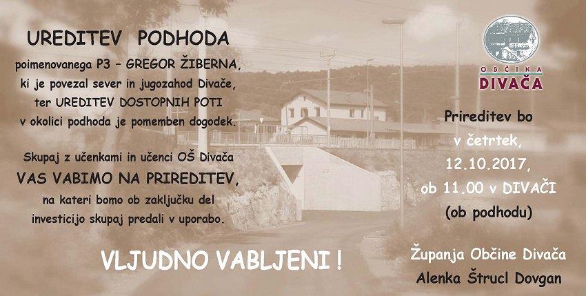 VABILO - OTVORITEV PODHODA P3 - Gregor Žiberna